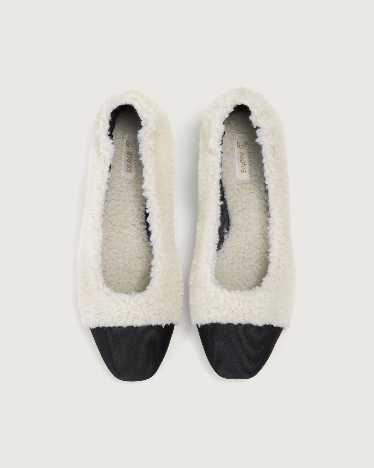 Beige Fleece Square Toe Ballerinas